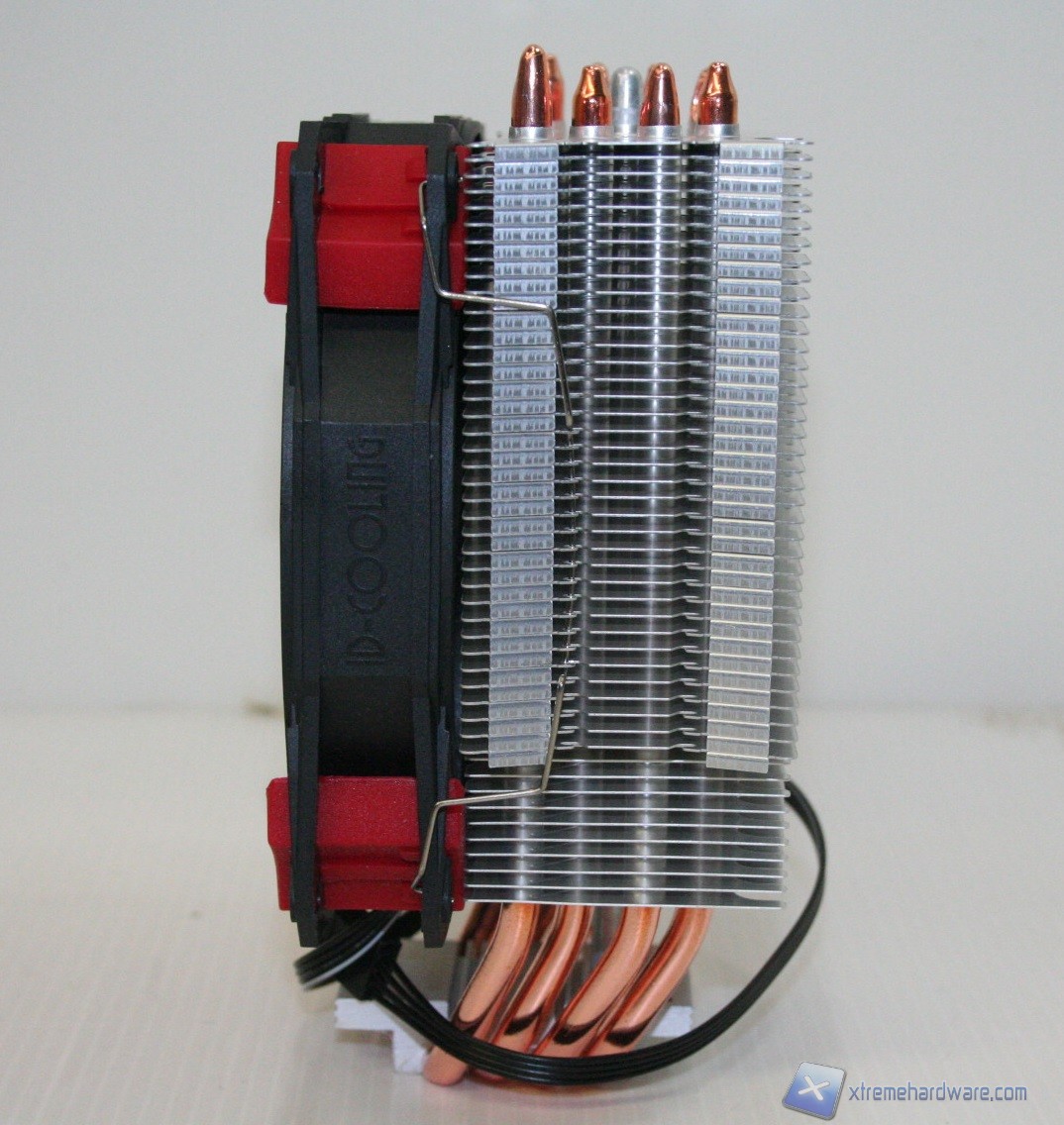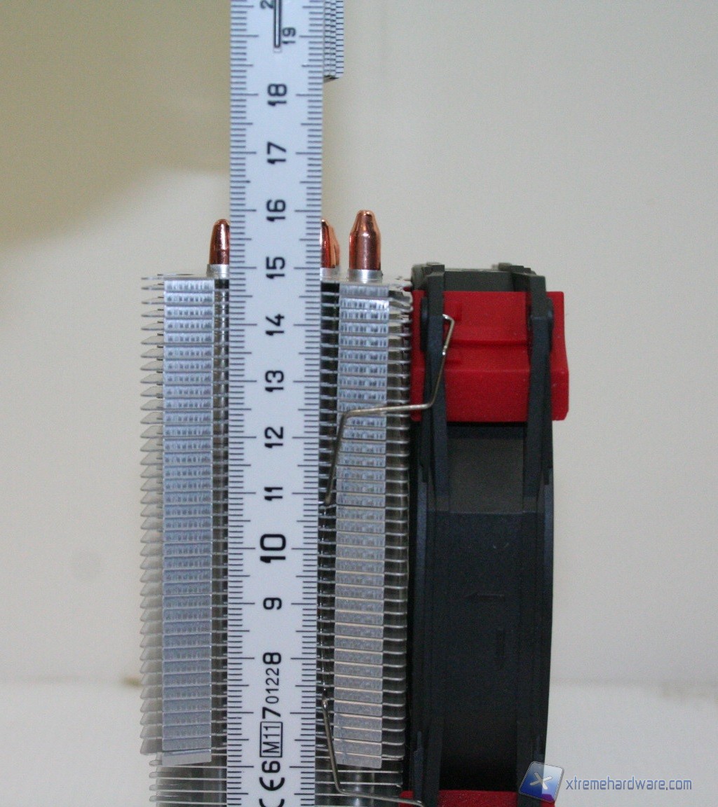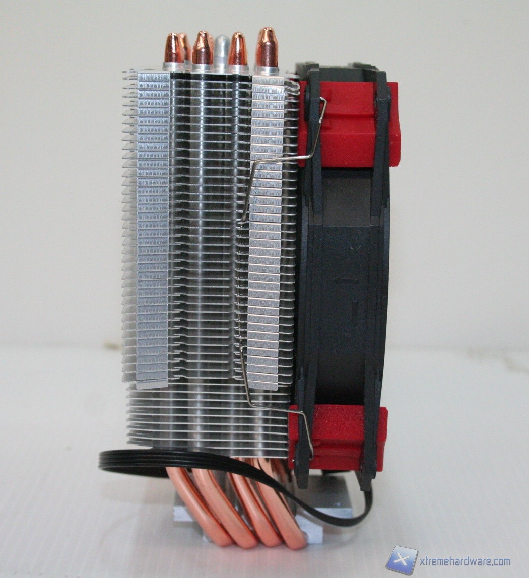 La struttura del radiatore è a singola torre, classica per concezione, ma presenta qualche elemento moderno tra cui un taglio delle alette di raffreddamento sulla base ed un orientamento sfalsato posteriormente, che aiuterà nella compatibilità con ram ad elevato profilo frontalmente. Presenta quattro Heatpipes a contatto diretto HDT e le dimensioni complessive sono abbastanza standard. La tipologia a singola torre permette un forte contenimento in prodondità, il che facilita quindi l'installazione di RAM ad alto profilo, in associazione ad una ventola frontale. Il dissipatore viene fornito con un modello proprietario da 120mm, ma come abbiamo anticipato è possibile montarne due, in Push/Pull. Il materiale delle alette è ovviamente alluminio e non sono eccessivamente fitte, nonostante presentino un numero elevato. Le heatpipes presentano una discreta scudatura terminale, anche se la tipologia è standard.