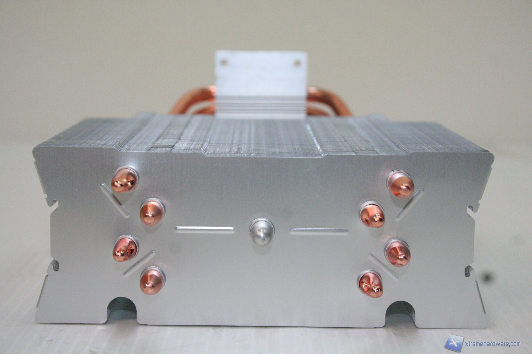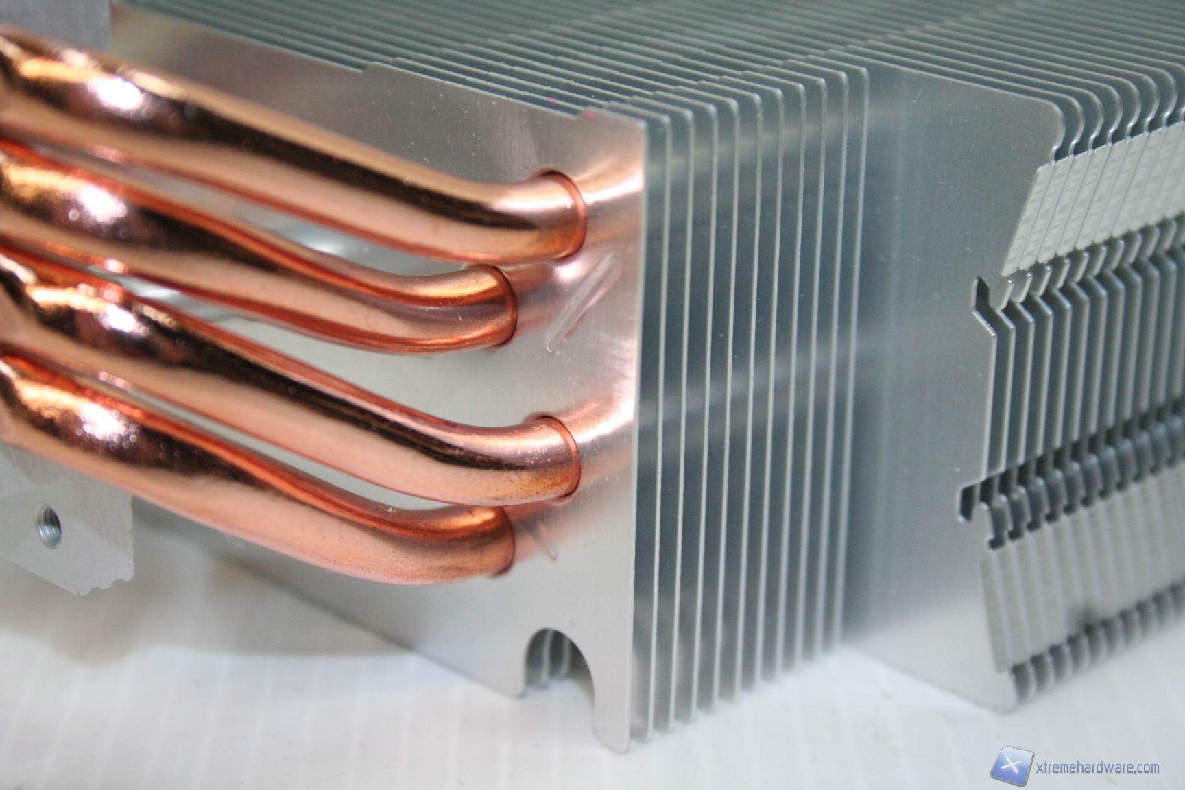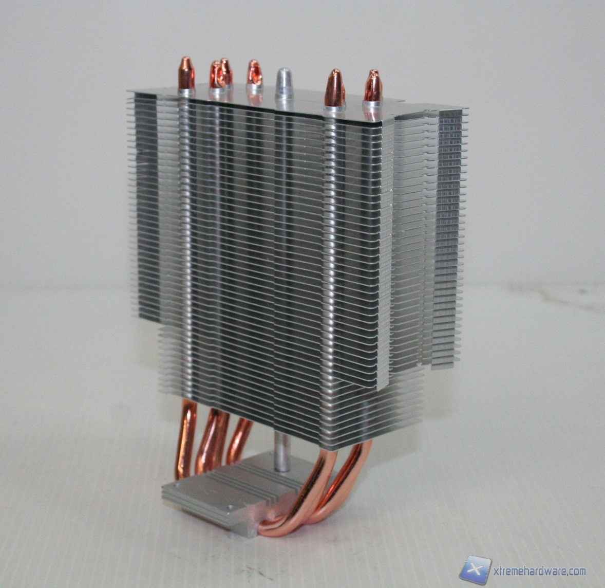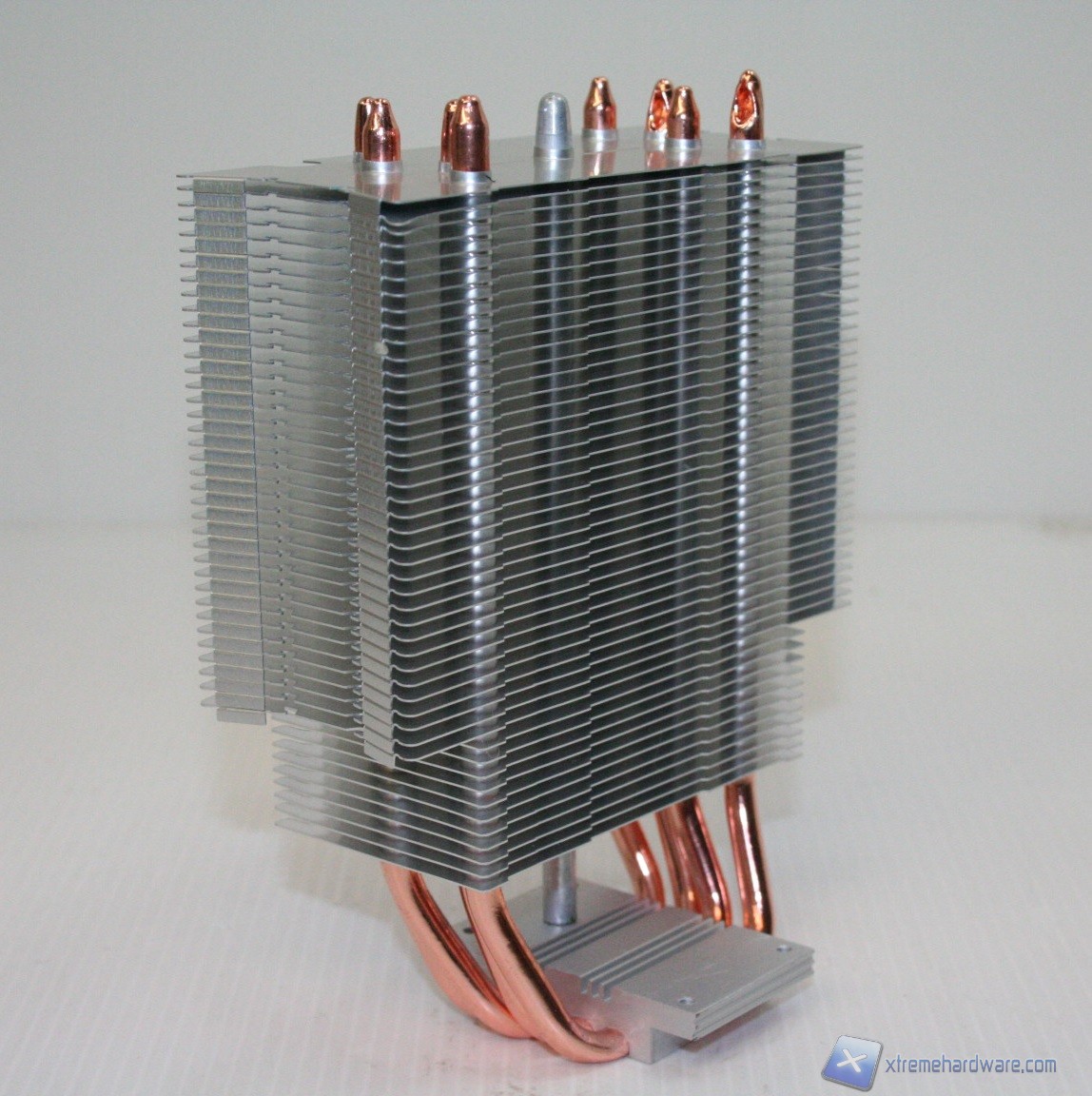 La base presenta delle heatpipes a contatto diretto, HDT, peccato però che siano di prima generazione ovvero con innesti di acciaio tra le heatpipes. Ciò compromette il risultato termico, in parte, per via della minore efficienza di scambio termico tra la base e le heatpipes. Nel corso delle nostre recensioni abbiamo appurato che questo design si presta a decrementi prestazionali se confrontato con una tipologia HDT, di seconda generazione, che prevede invece l'assenza di innesti tra le HP.