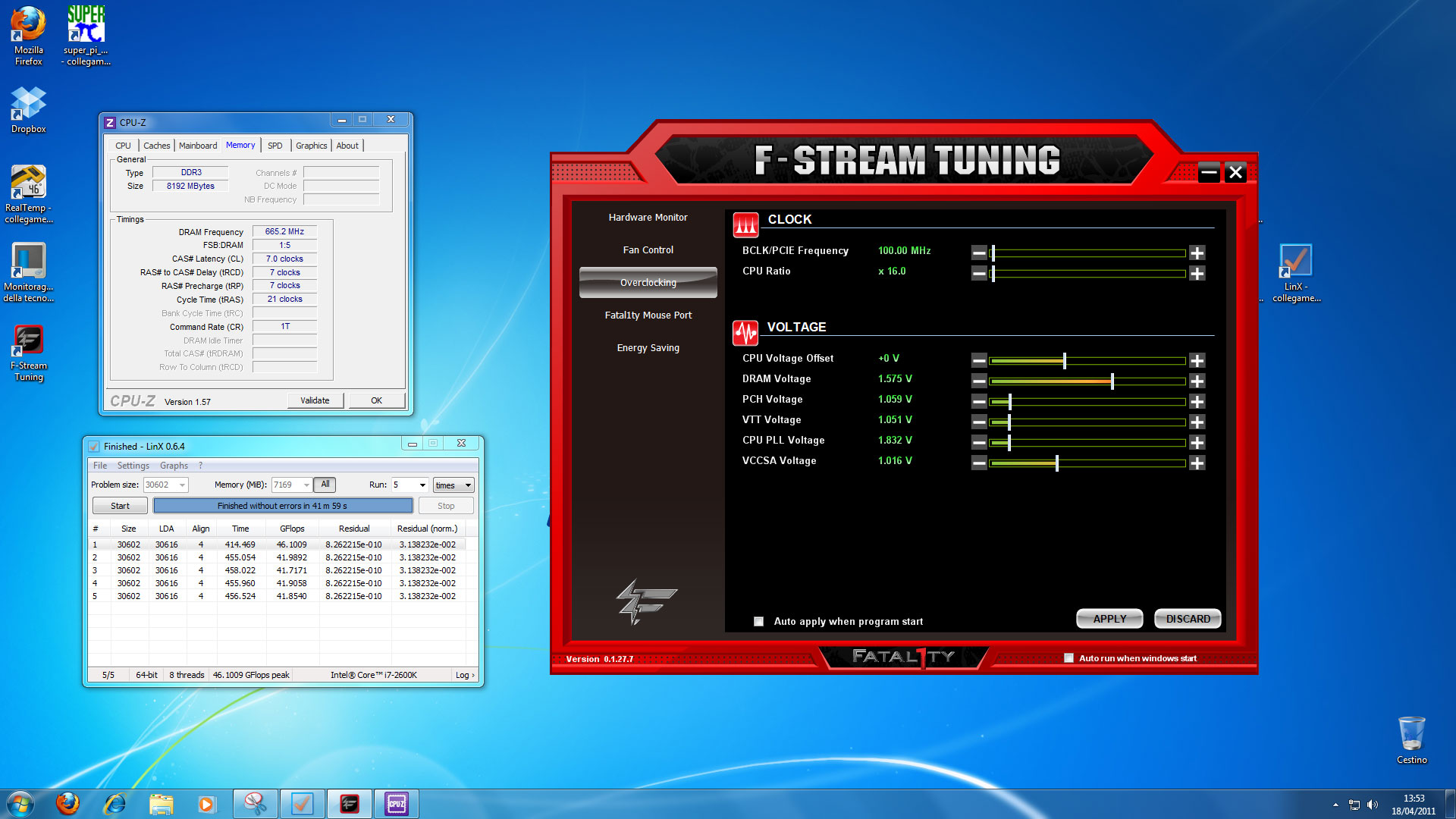 Come prima cosa abbiamo lavorato sulle latenze alla frequenza di 1333MHz mantenendo il voltaggio entro le specifiche consigliate da Intel nel proprio Data Sheet (1.57v), in questo caso abbiamo concluso positivamente 5 cicli del tool LINX alle latenze di 7-7-7-21 1T. Questo test ci è servito per saggiare la bontà delle memorie al moltiplicatore più basso per Sandy bridge che è l’unico supportato dai sistemi basati sul chipset Intel H67, oltre a questo abbiamo effettuato tutti i test sintetici del caso.
