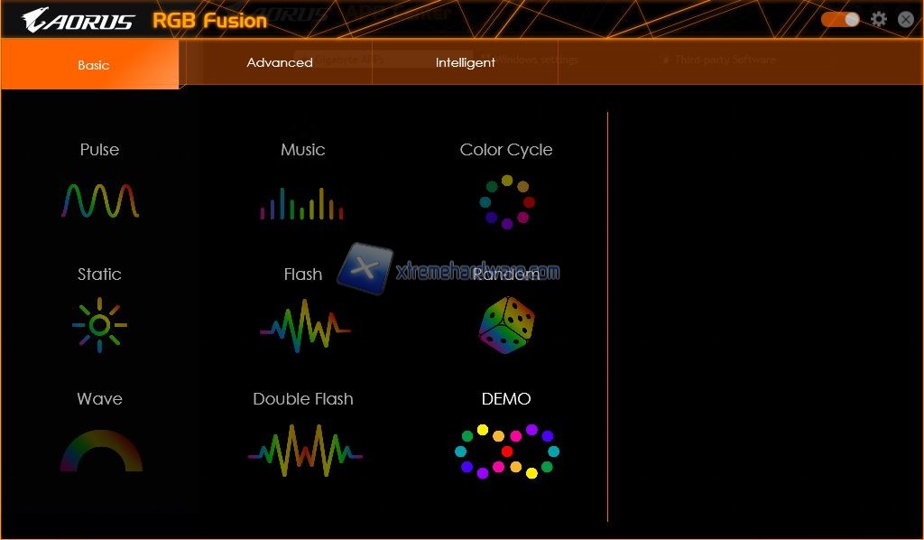 Ora una volta avviato il vero e proprio software RGB Fusion saremo accolti da una schermata di davvero facile e immediata comprensione. Si basa su tre Menù principali che sono ‘’Basic’’, ‘’Advanced’’ e ‘’Intelligent’’.